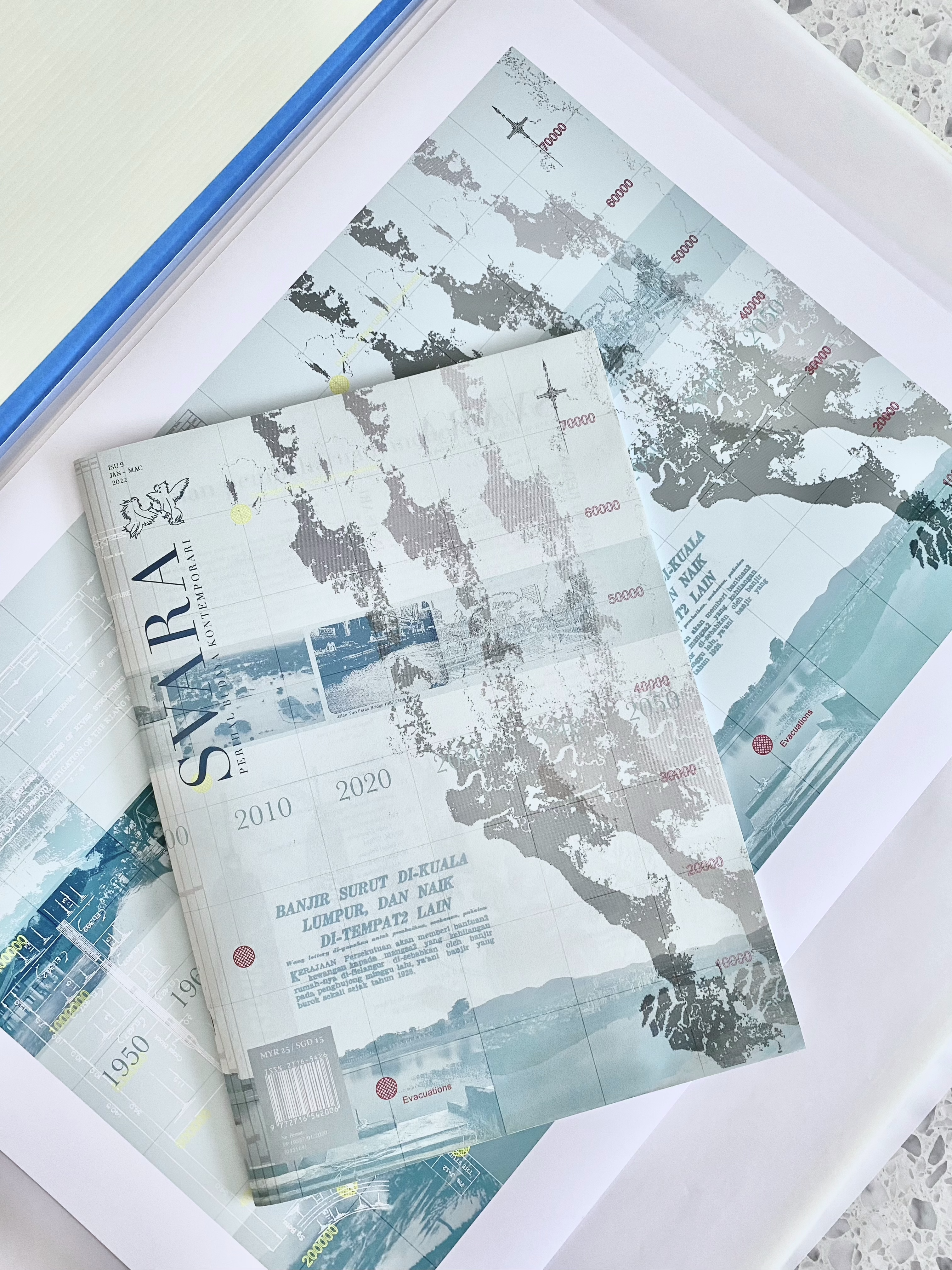a collaboration with svara jurnal for Edisi 9, our cover maps the passage of time, the cyclical nature of flooding, and the wilful ignorance of government. Images of flood incidents (recent and long past), cold bureaucratic statistics, mitigation plans that never happened all come together in the muddy waters of this collage. "Renyut Rendam" is immersed in a current of potent, emotive images that wash up every year. Like sediment, they accumulate until they are accepted simply as a feature of the surrounding landscape.